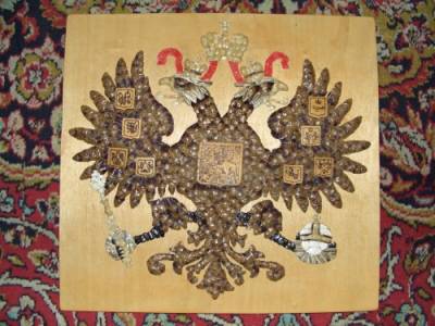 Герб России до начала XX века. 65х60смНаличие: Есть Цена: 15000руб. Герб России до начала XX века. Сделано из природных материалов. Ручная работа. |