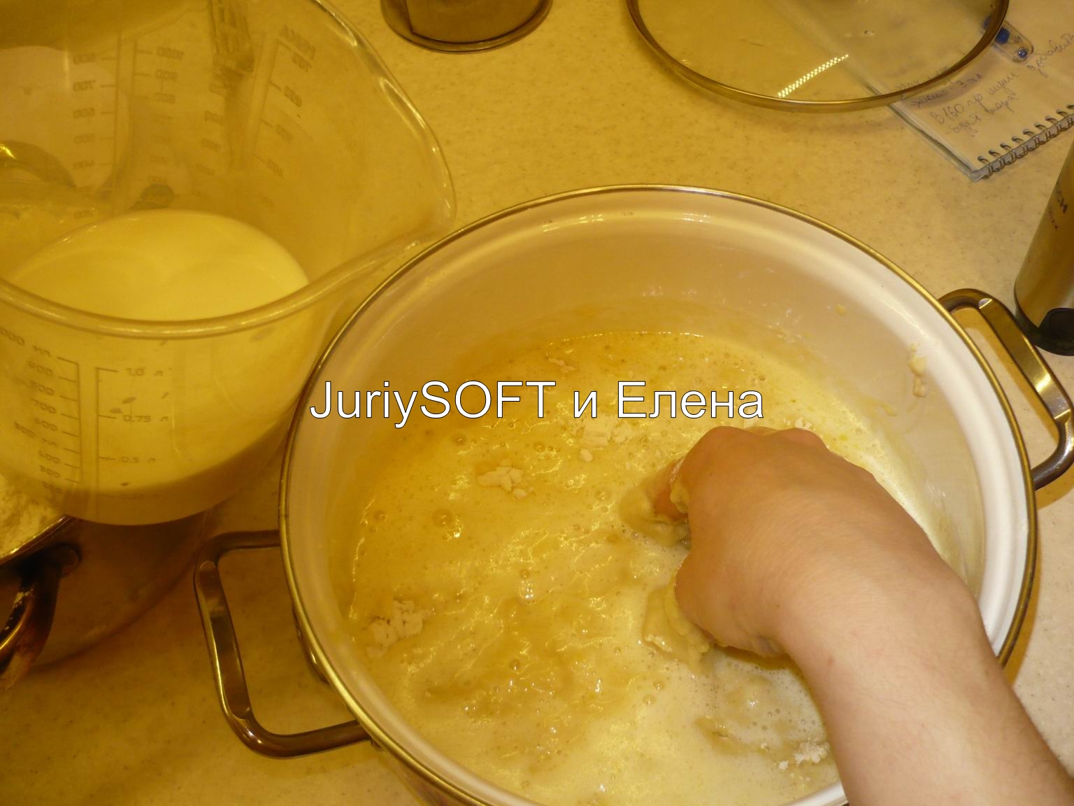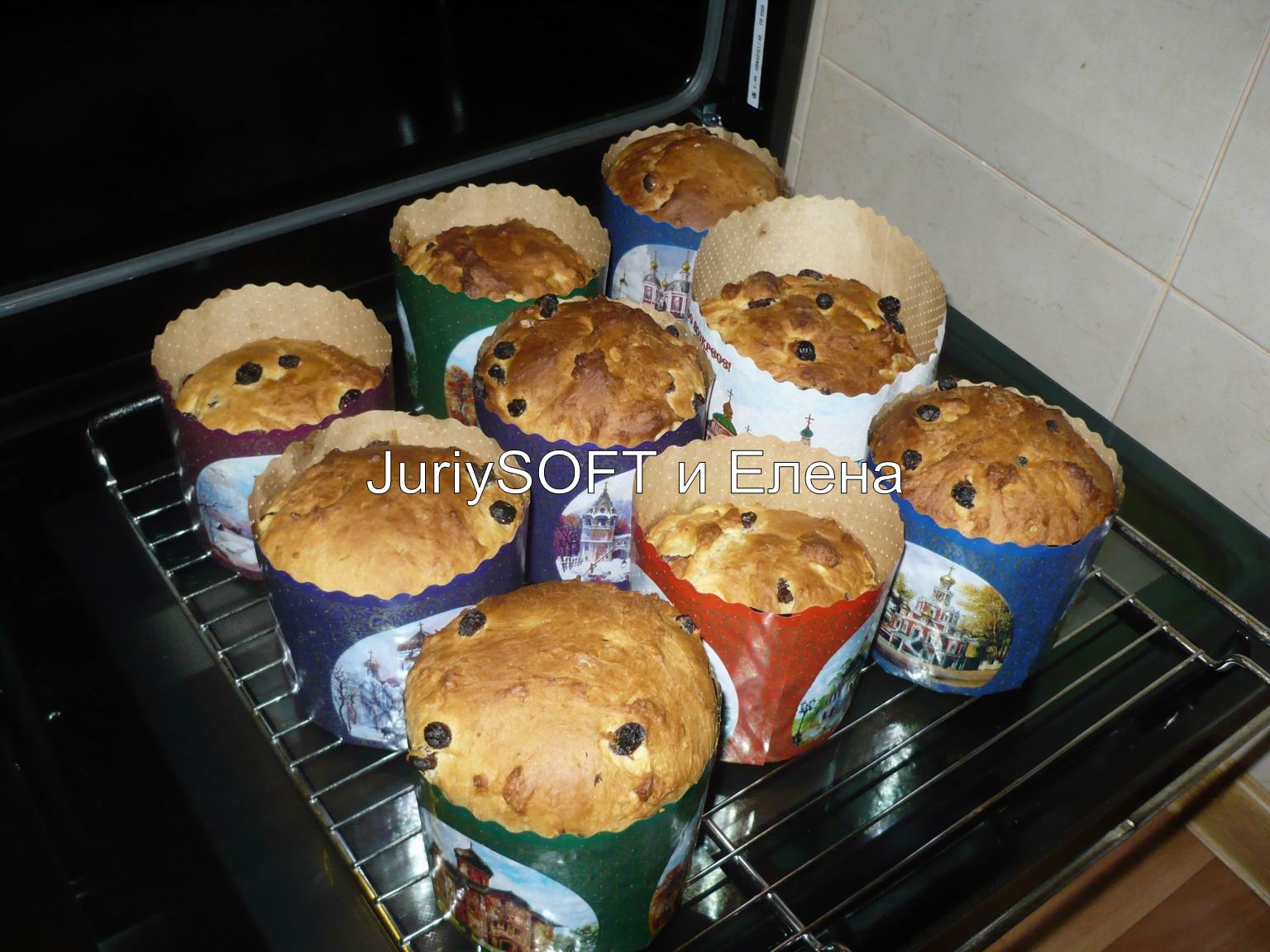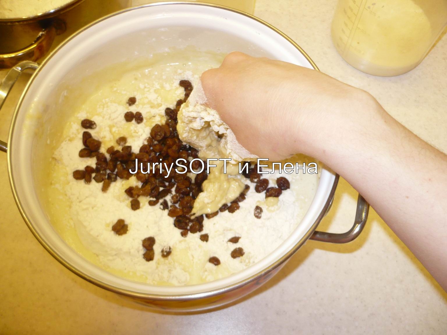 Кузнецова Елена: Хочу поделиться рецептом пасхального кулича. Это рецепт классического кулича с изюмом. Куличи получаются внутри мягкими и рассыпчатыми, а после приготовления долго не черствеют, и тают во рту. Рецепт достаточно прост и занимает очень мало времени для его воплощения в жизнь. На вкус кулич имеет сладковатый вкус и он совсем НЕ приторно-сладкий. Этот рецепт мне очень понравился и в следующий раз я буду готовить именно так. Время приготовления: 90 минут Количество порций: 9 Кулич пасхальный Масло сливочное — 150 г Яйцо куриное — 5 шт Молоко — 450 мл Мука — 1235 г Сахар (Взять 5ст.л. для дрожжей!) — 240 г Масло подсолнечное — 30 мл Ванильный сахар — 15 г Корица - по вкусу. Изюм — 150 г Дрожжи ("Живые") — 50 г Глазурь сахарная Масло сливочное — 75 г Сахар — 250 г Молоко — 10 ст. л. Рецепт "Кулич пасхальный": Это ингредиенты, которые понадобятся для приготовления кулича. Изюм замочить в теплой воде. Он должен набухнуть. После того, как изюм хорошо пропитается водой, то потом я его откидываю на друшлаг. Дрожжи раскрошить руками, добавить 5ст. л. сахара. Сахар берется из основного объема по рецепту! Молоко нагреть, оно должно быть теплым, но не горячим! Дрожжи залить 150мл. теплого молока. Молоко берется из основного объема по рецепту! Дрожжи необходимо поставить в теплое место для того, чтобы они "подошли". Я делаю это так: заранее кипячу чайник, потом переворачиваю у него крышку, а сверху ставлю тарелку с дрожжами. Через 20мин. мои дрожжи "подошли" как на фото. Взять большую кастрюлю и высыпать в нее 160гр. муки. Мука берется из основного объема по рецепту! Затем, я готовлю опару - добавляю "подошедшие" дрожжи в муку. Затем, все необходимо перемешать до однородного состояния. Затем, поставить эту опару в теплое место, накрыв сверху крышкой. Я опять же пользуюсь своим любимым способом и делаю это с помощью чайника. Опара должна "подойти" и увеличиться в размере. Яйца взбить с оставшимся сахаром, ванильным сахаром и корицей. Получается вот такая пена, которая увеличилась в объеме. Я взбивала миксером непрерывно 10 мин. Вот так у меня "подошла" опара. В опару добавить взбитые яйца Следом, я добавляю в опару немного муки, растопленное сливочное масло и подсолнечное масло. Все ингредиенты нужно перемешать руками. Затем, я начинаю замешивать тесто: понемногу подсыпаю муку. Немножко насыпала и все хорошо перемешала руками. Когда тесто немного загустеет, то в него необходимо влить теплое молоко - все перемешать. Молоко слегка подогреть, но оно не должно быть слишком горячим! Следом, я добавляю изюм. После того, как изюм набух, я переложила его в друшлаг и просто дала стечь излишкам воды. После того, как я добавила в тесто молоко и изюм, то я опять продолжаю подсыпать в тесто осаток муки. Немного насыпала и все хорошо перемешала руками. Вот так выглядит мое тесто в итоге! Из моего объема теста у меня получилось 8 маленьких и 1 большая форма для кулича. Затем, я раскладываю тесто по формам для выпечки. Форму заполняю наполовину, и оставляю тесто в формах на 20-25 мин. для того, чтобы оно там увеличилось в объеме. Куличи выпекать в духовке примерно 30 мин. При температуре 180С*. Затем, я вынимаю куличики из духовки и даю им полностью остыть при комнатной температуре. Ориентиром готовности куличей послужит их золотистая корочка, также готовность можно проверить деревянной шпажкой, если кул